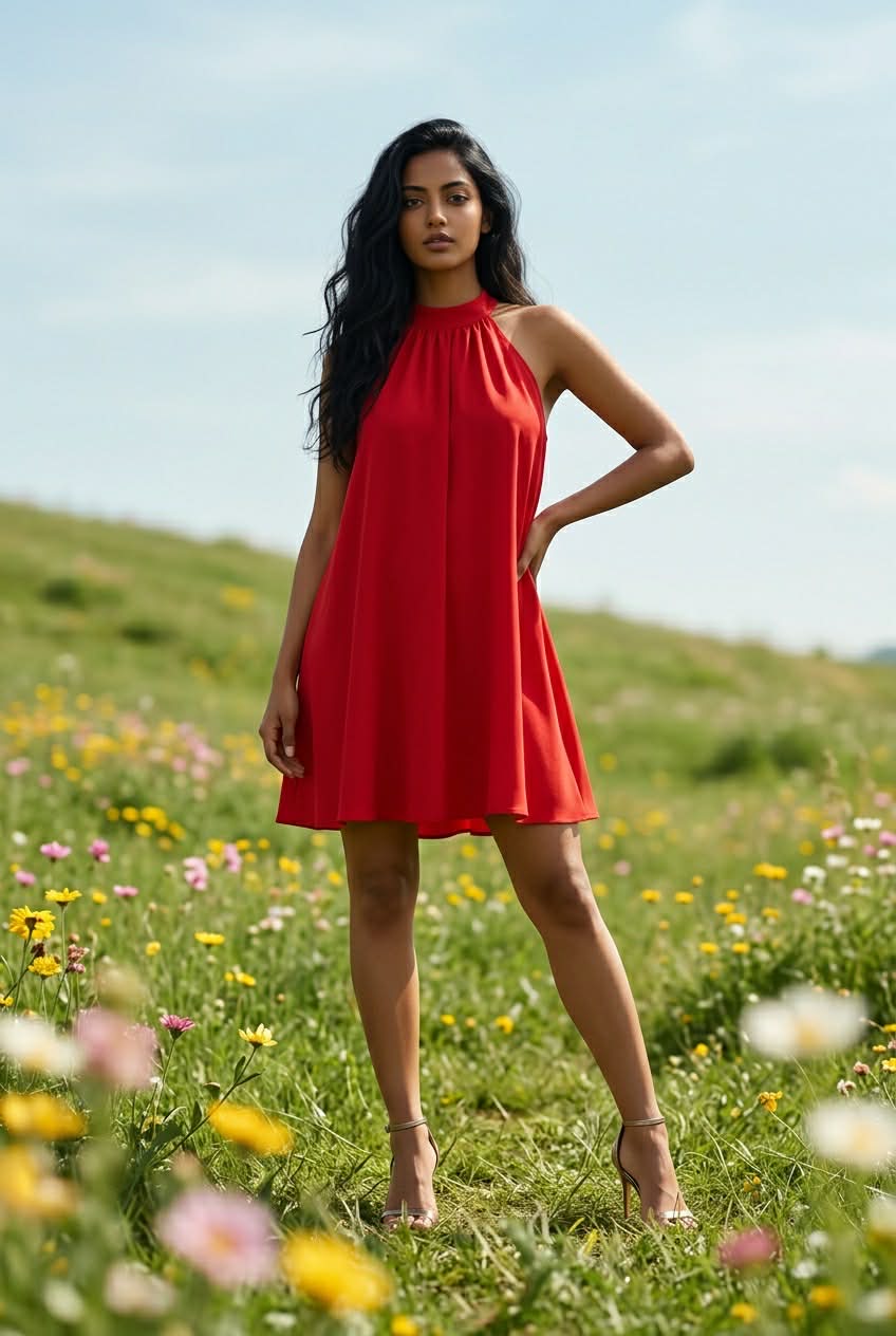 Sukienka ZOJA czerwona bez rękawów - uszyta we WROCŁAWIU